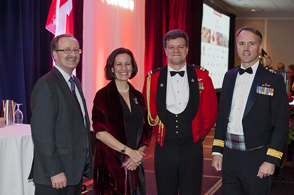 Dr. Harry Kowal, Principal of the Royal Military College of Canada, Dr. Stephanie Belanger, RMCÂ faculty member and Associate Director of the Canadian Institute for Military Veterans Health Research, Captain Simon Mailloux, RMC Alumni and first Canadian Armed Forces member to return to active service as an amputee, Brigadier General Al Meinzinger, Commandant of RMC.